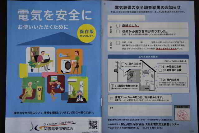 CMでおなじみの関西電気保安協会が、電気設備の安全調査に来られました。