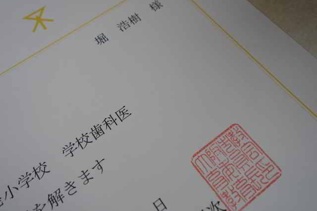 報告が遅くなりましたが、3月末で一身上の都合により、地元の小学校の歯科校医を退任しました。