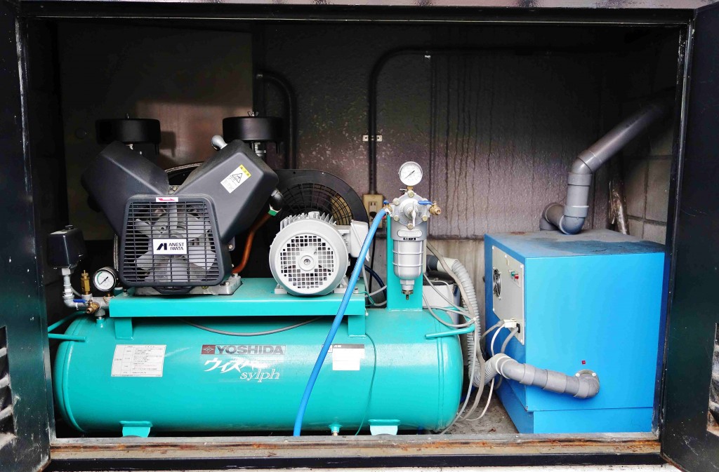 機械室はスペースの関係で診療室内にあるところが多いのですが、当院は戸外に出しています。