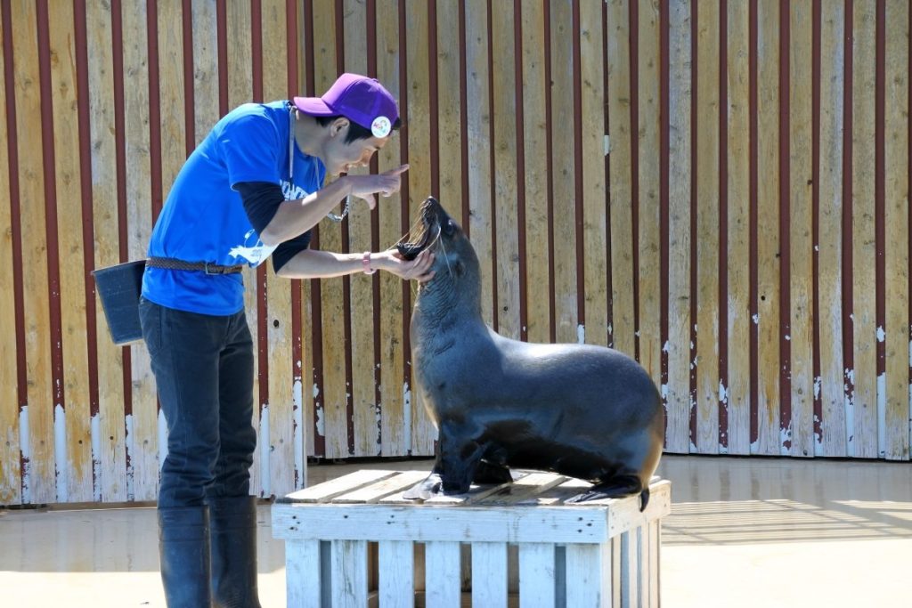 イルカやアシカへの訓練が特に進んでいるそうです。