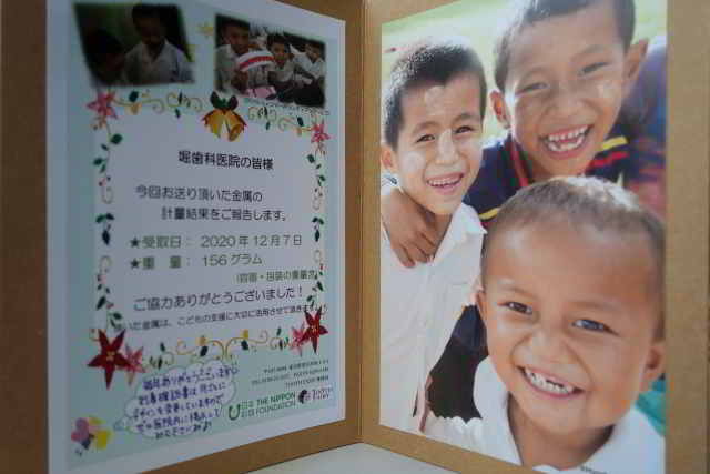 TOOTH FAIRYプロジェクトとは、治療により撤去した金属をリサイクルすることにより、ミャンマーへの学校設立など、恵まれない子供たちを支援する活動です。