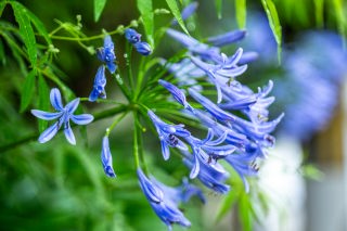 梅雨の花壇に咲くアガパンサス。
