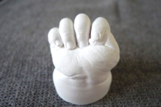 息子夫婦に頼まれて、スタッフにも協力してもらい、生後4ヶ月の孫の手型を採りました。
