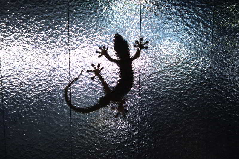 一日の診療が終わり、診療室の電気を消灯すると、窓に大きなヤモリが貼りついていました。