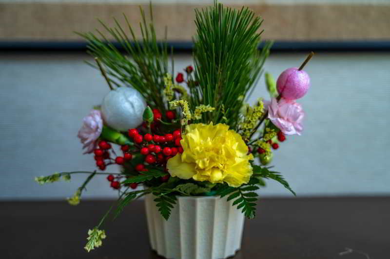 松の内は過ぎましたが、堀歯科医院のお花はまだ正月気分です。