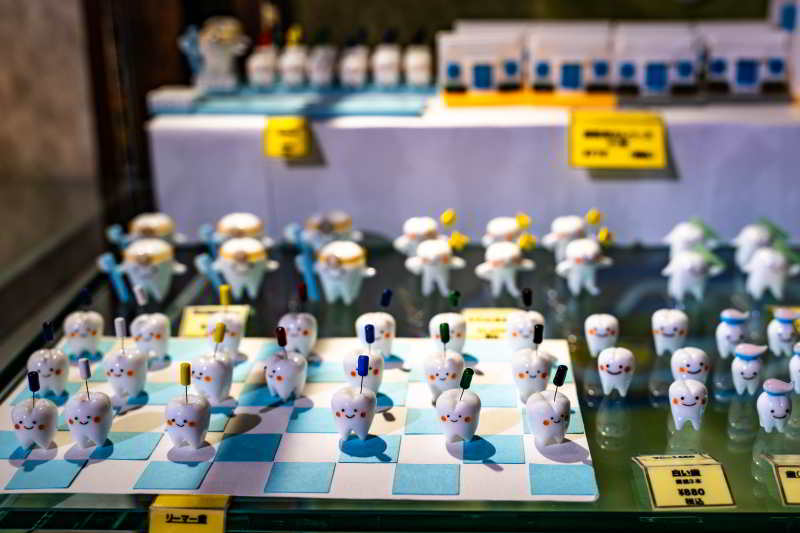 ミニチュアガラス細工も所せましと置いてありましたが、その中に歯の神経の治療に使う器具を使用したアクセサリーがありました。