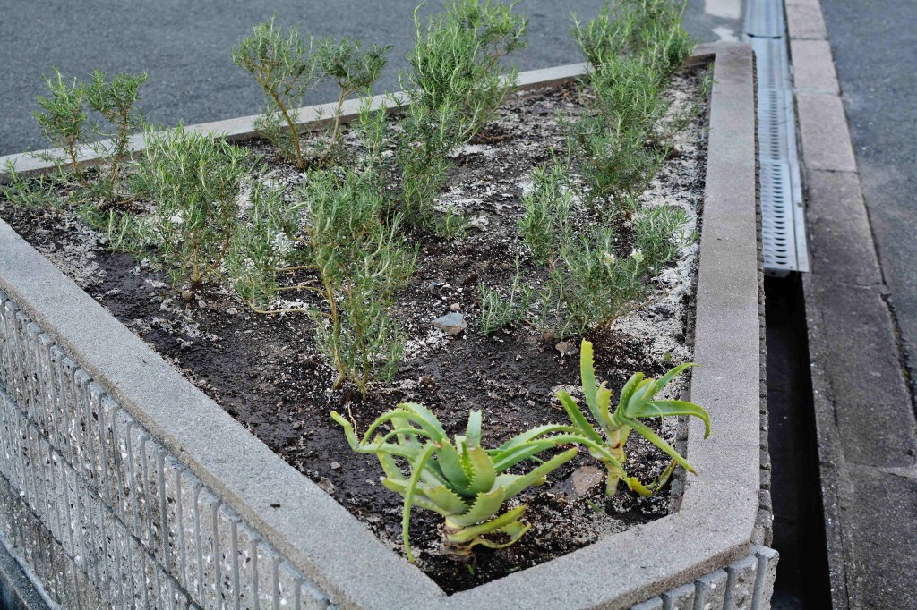手前の2株のアロエは7月頃、植木泥棒ならぬ、どなたかが知らぬ間に植えて下さった謎のアロエです。今回、植木屋さんにお願いして抜かずに残してもらいました。